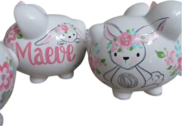 Every child needs a piggy bank! These banks make a great baby shower, birthday, or anytime gift. Piggy banks are equipped with a rubber stopper on the bottom for easy access. Comes wrapped in a cellophane bag with bow and gift card. Piggy size is approx. 8x7x6