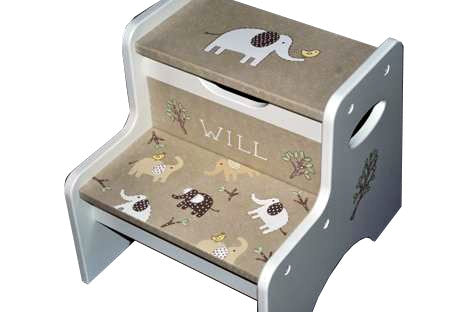 This 2 step stool is designed to help toddlers reach the bathroom sink (brushing teeth and washing hands) kitchen counters (cooking with mom) and climbing into their big boy or big girl beds. This sturdy wooden 2 step stool has built in handles for easy carrying. All of our stools are painted with a great amount of detail on both steps. In addition there is coordinating detail painted on both sides. ALL STOOLS CAN BE PERSONALIZED AT NO EXTRA CHARGE. ****NO STENCILS OR STAMPS ARE USED**** A durable polyurethane finish makes it easy to clean and built in side handles make it easy to carry. All paints and finishes used are lead-free and non-toxic, and the solid hardwood construction is designed to last. Dimensions: 13" H x 13" W x 13.5" D ****THIS STOOL SHIPPED FULLY ASSEMBLED****
