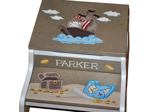 This 2 step stool is designed to help toddlers reach the bathroom sink (brushing teeth and washing hands) kitchen counters (cooking with mom) and climbing into their big boy or big girl beds. This sturdy wooden 2 step stool has built in handles for easy carrying. All of our stools are painted with a great amount of detail on both steps. In addition there is coordinating detail painted on both sides. ALL STOOLS CAN BE PERSONALIZED AT NO EXTRA CHARGE. ****NO STENCILS OR STAMPS ARE USED**** A durable polyurethane finish makes it easy to clean and built in side handles make it easy to carry. All paints and finishes used are lead-free and non-toxic, and the solid hardwood construction is designed to last. Dimensions: 13" H x 13" W x 13.5" D ****THIS STOOL SHIPPED FULLY ASSEMBLED****