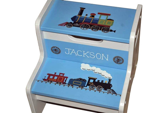 This 2 step stool is designed to help toddlers reach the bathroom sink (brushing teeth and washing hands) kitchen counters (cooking with mom) and climbing into their big boy or big girl beds. This sturdy wooden 2 step stool has built in handles for easy carrying. All of our stools are painted with a great amount of detail on both steps. In addition there is coordinating detail painted on both sides. ALL STOOLS CAN BE PERSONALIZED AT NO EXTRA CHARGE. ****NO STENCILS OR STAMPS ARE USED**** A durable polyurethane finish makes it easy to clean and built in side handles make it easy to carry. All paints and finishes used are lead-free and non-toxic, and the solid hardwood construction is designed to last. Dimensions: 13" H x 13" W x 13.5" D ****THIS STOOL SHIPPED FULLY ASSEMBLED****